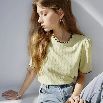 Summer French-Style Petal Placket Bubble Sleeve Top
